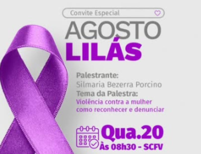 Nesta quarta-feira (20) a Prefeitura de São José de Caiana vai promover uma palestra tratando o tema "Violência contra a mulher: como reconhecer de denunciar".A iniciativa faz parte das atividades da campanha "Agosto Lilás", cuja finalidade é trabalhar a proteção da mulher contra violência e a divulgação de informações sobre como denunciar casos de abusos e agressão. A palestra vai acontecer na sede do Serviço de Convivência e Fortalecimento de Vínculos (SCFV), a partir das 8h30.