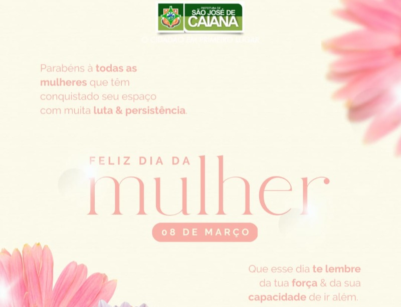 A Prefeitura de São José de Caiana publicou nesta quarta-feira (8) uma mensagem de homenagem ao público feminino em alusão ao Dia Internacional da Mulher. A iniciativa acontece como parte das ações desenvolvidas pela gestão municipal em referência à data comemorativa.