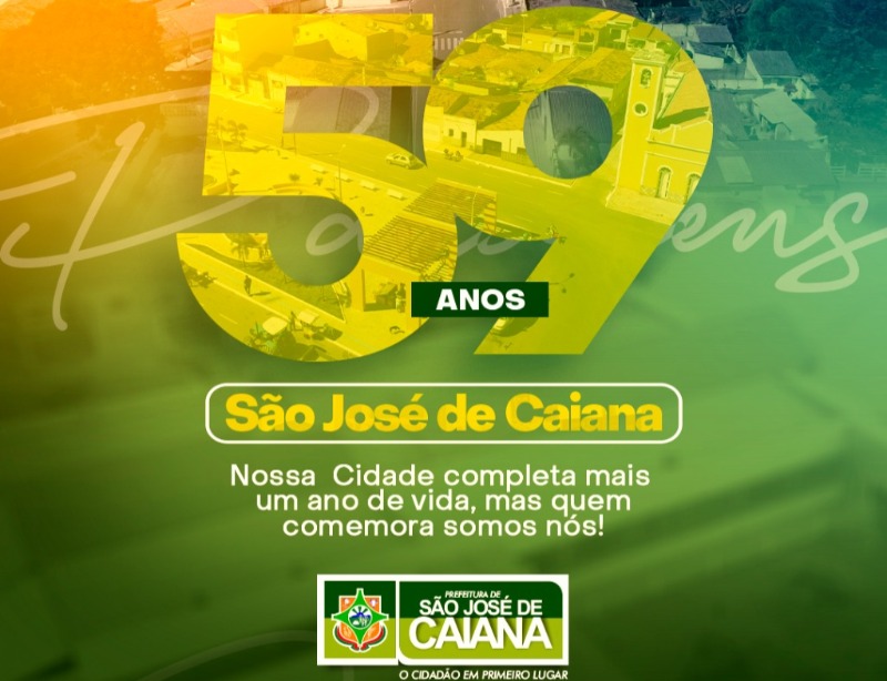 O município de São José de Caiana, localizada no sertão paraibano, está completando neste dia 07 de novembro, 59 anos de sua Emancipação Política, tendo muito o que comemorar, pois através da atual gestão, sob o comando do prefeito Manoel Moleque, o município caianense tem vencido muitos desafios para oferecer o que há de melhor para o seu povo, em termos de Saúde, Educação, infraestrutura, Esporte, Cultura e tantos outros benefícios, aos quais têm suprido as principais necessidades do povo.