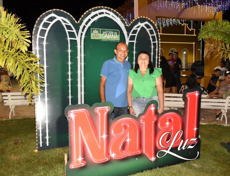 Logo após as apresentações, o prefeito Manoel Moleque, ao lado da primeira-dama, Ducimária Rodrigues, fez um discurso a população presente e realizou a inauguração oficial da decoração de Natal da Praça Central, oficializando a abertura do Natal Luz 2021 no município de São José de Caiana.