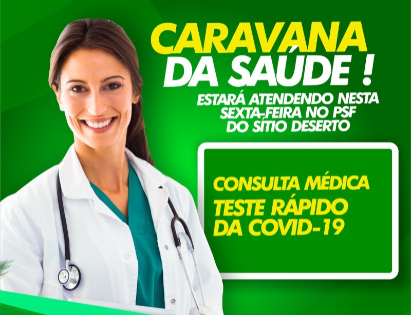E na sexta-fera, dia 12 de Março, a Caravana da Saúde segue com a programação no PSF do sítio Deserto, realizado consulta médica e testagem da população para a Covid-19.