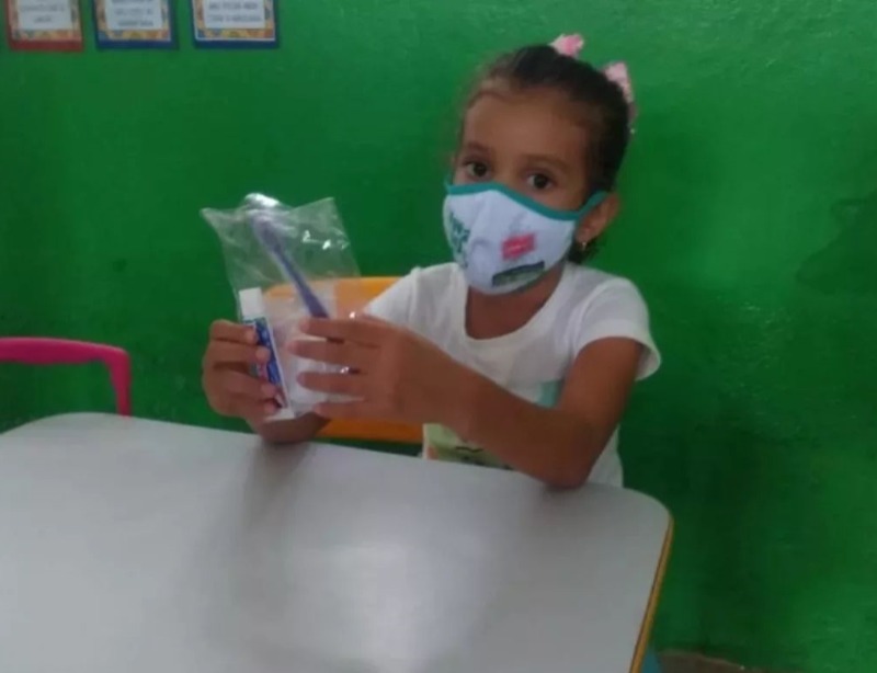 Durante o encontro, os alunos foram orientados sobre como realizar a escovação correta dos dentes e houve ainda a distribuição de de kits com escova e pasta.