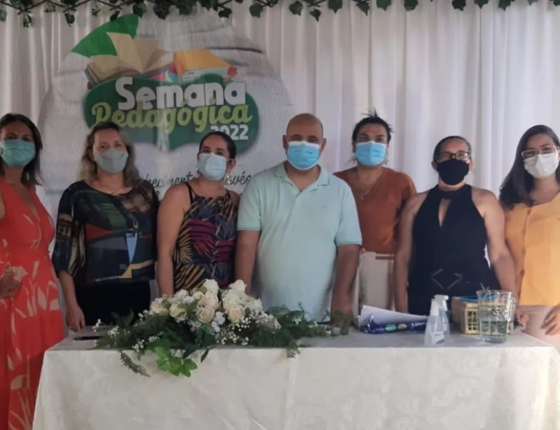 A Semana Pedagógica 2022 está sendo realizada pela Prefeitura Municipal observando a adoção das medidas preventivas a Covid-19, tais como, o uso obrigatório de máscara facial.